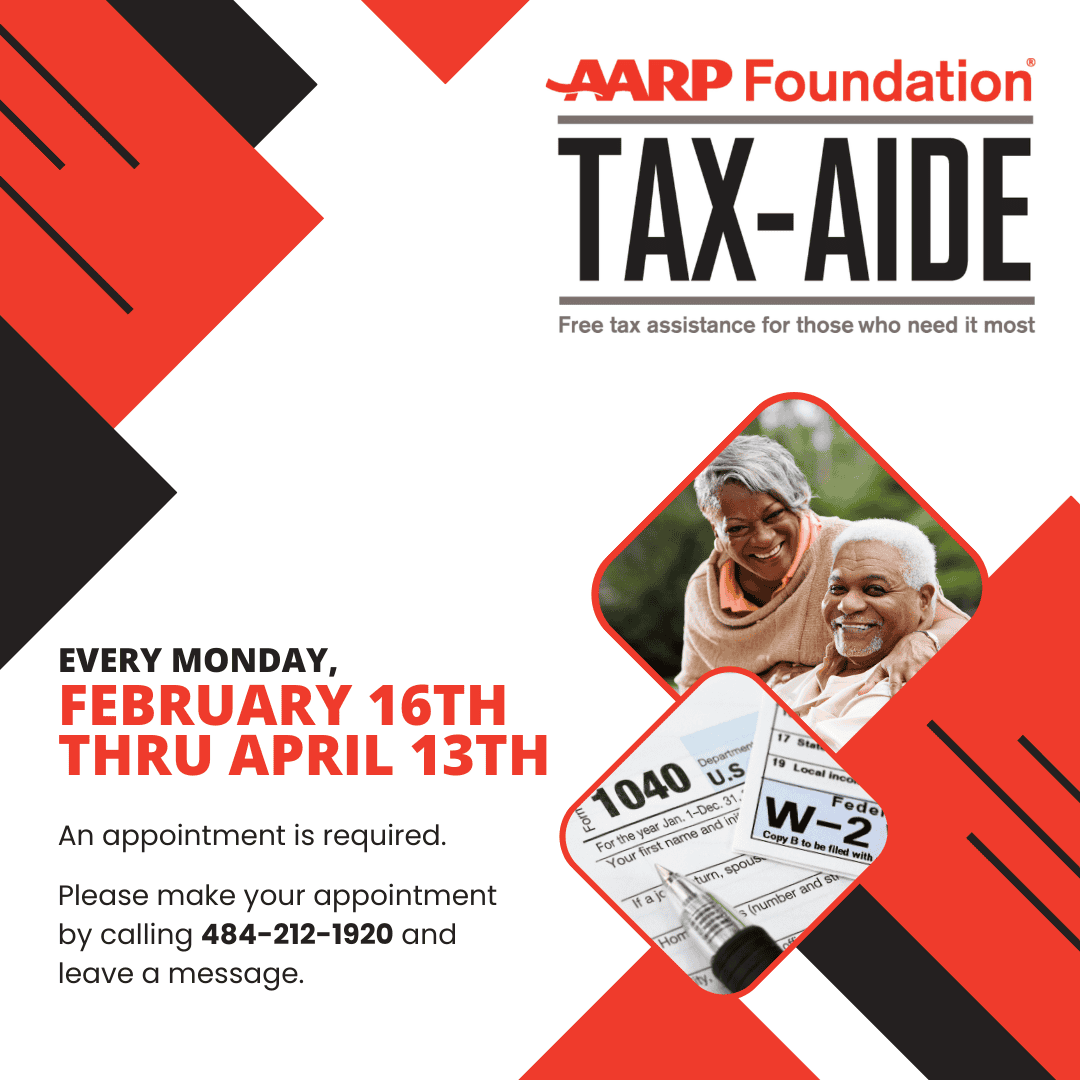 AARP Foundation Tax-Aide will offer free, in-person tax preparation from February 16 through April 13, providing assistance to low- and moderate‑income taxpayers—especially adults 60 and older. Trained volunteers help with 1040 forms, standard schedules, and free e‑filing. Appointments are required, and participants should bring all relevant tax documents to their session. Please register directly through the AARP here.